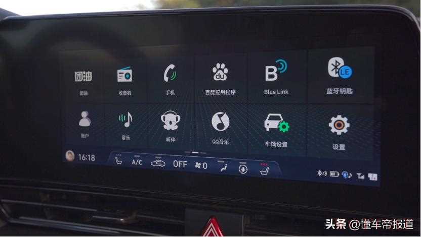 中控屏支持CarLife,还内置了很多APP,有团油、地图、QQ音乐、听伴等。车主还可以手机下载Blue Link软件,绑定后对车辆进行远程操控。