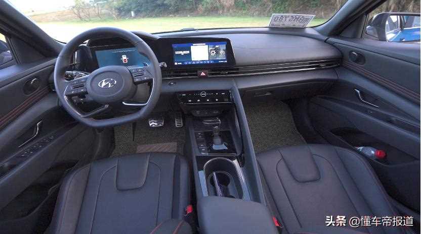 全新伊兰特内饰给人眼前一亮的感觉,液晶显示屏和中控屏幕都为10.25英寸,联屏设计以及沉浸式驾驶座舱也是时下流行的标配之一。下方空调控制区域采用了多点触控式设计,反应较灵敏,同时也可使用语音控制。