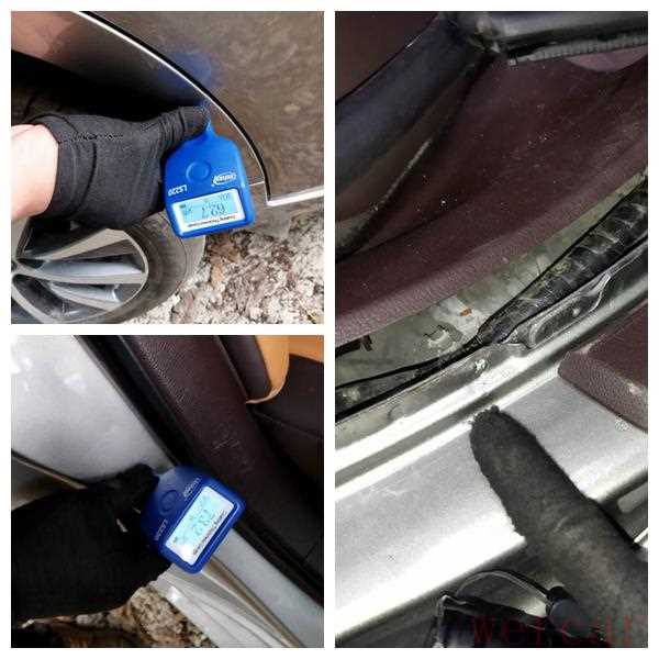 右B柱的漆面正常,但是到了下面门槛又不对劲了,又检查到一个切割焊点。