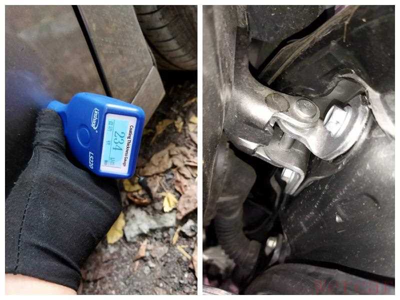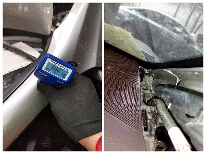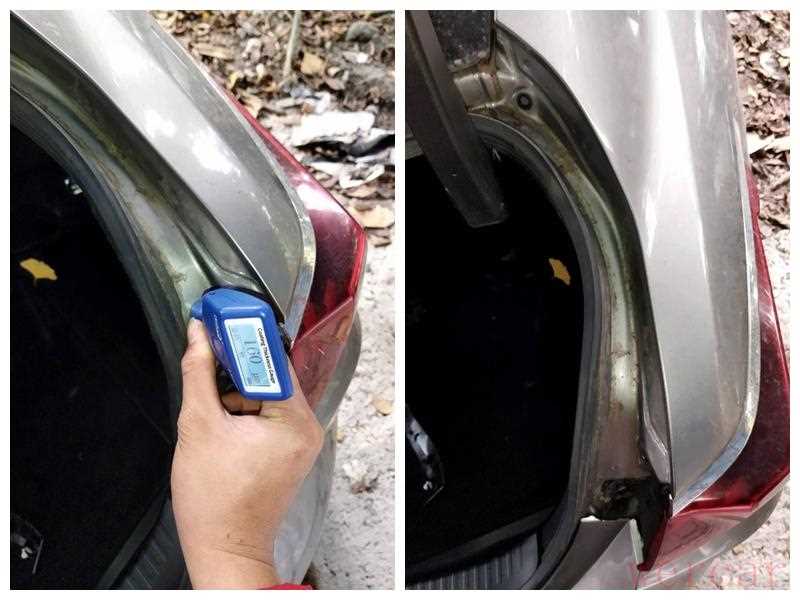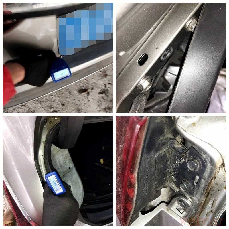左边的漆面不太理想,前后叶子板、后车门和A柱喷漆,C柱钣金刮灰喷漆,刮碰的地方真不少,这车也才开了不到两万公里,车主的驾驶技术不敢恭维啊!但这还是小问题,后面的检测更精彩!