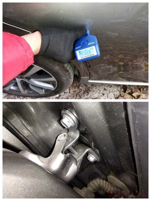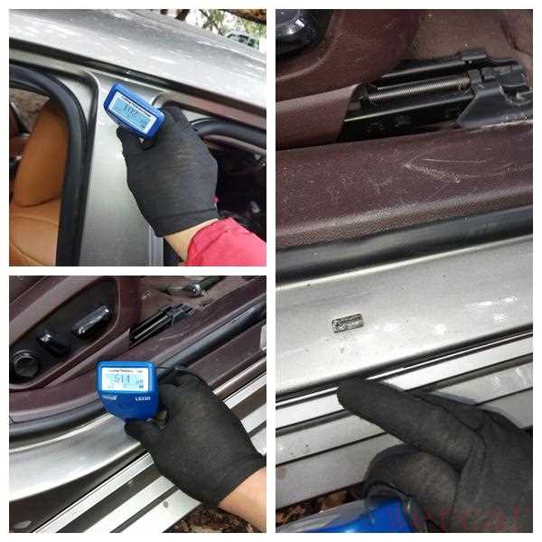 右后门的漆面厚度看上去挺正常的,但是铰链螺丝和锁块都是拆过的,经过巨星多方面的判断,这个门是更换过的!