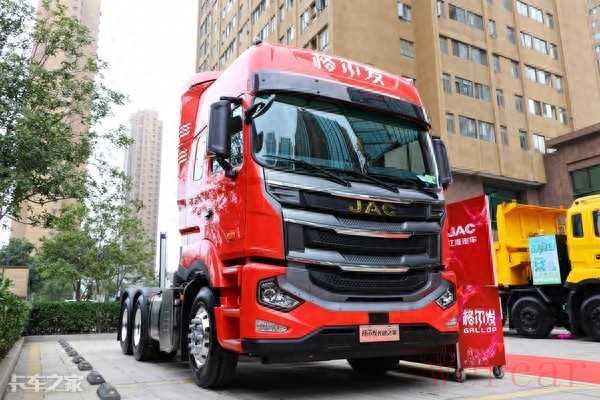 【卡车之家 原创】2020年,由于新冠疫情得影响,公路运输市场行情非常的不景气。如果非要在“瘸子里面挑将军”的话,那就只能把物流配货这个市场单独拎出来了,由于电商行业相对而言受新冠疫情影响较小,其衍生市场也吃到了不少的红利,其中就包括物流配货、快递运输这个产业。今天,卡车之家为大家带来的这款车是在江淮格尔发年会上展出的一台针对快速物流的江淮格尔发A5W,这款小速比并且匹配有AMT变速箱的牵引车具体配置怎么样?开起来舒服吗?咱们一起看一看。● 经典黑红配色 盾型中网非常硬朗