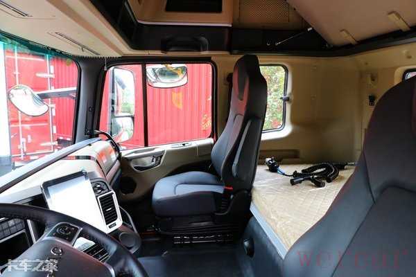 传动系统与之匹配的是采埃孚12TX2420TD AMT手自一体变速箱,前进挡位12个,倒挡2个。这款变速箱的头挡挡速比为16.688,最高挡为直接挡。AMT变速箱的好处相信各位卡友都清楚,那就是可以解放驾驶员的右手左脚,非常舒适。这款变速箱对山路、高速、国道等不同工况都进行了不同的标定,同时兼顾了动力性、经济性以及舒适性,非常全面。