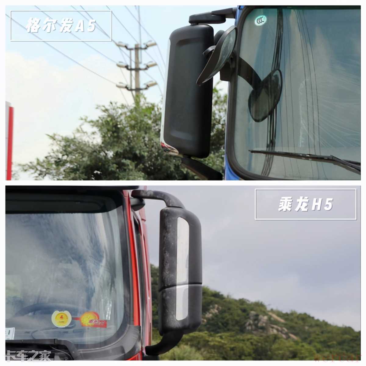 两车后视镜方面均采用了一体式后视镜外罩设计,在高速上行驶的风阻性表现更好,针对长途绿通高速运输来说对于提升燃油经济性是有帮助的。外罩上还采用镀铬材质饰条进行了点缀,颜值方面加持,不过对比两车都并未配备电动调节、电加热这两大功能配置,在实用性方面相对还是比较欠缺一些。