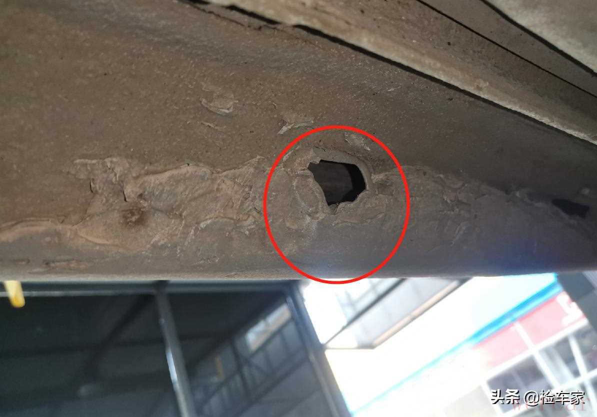最后检查下边梁的时候发现右侧下边梁有钣金后刮腻子的痕迹,应该是跟右前翼子板钣金在同一次剐蹭中造成的,也没什么太大的问题,毕竟一般没有人埋头看你底盘,对美观也没啥影响,可以不管它。