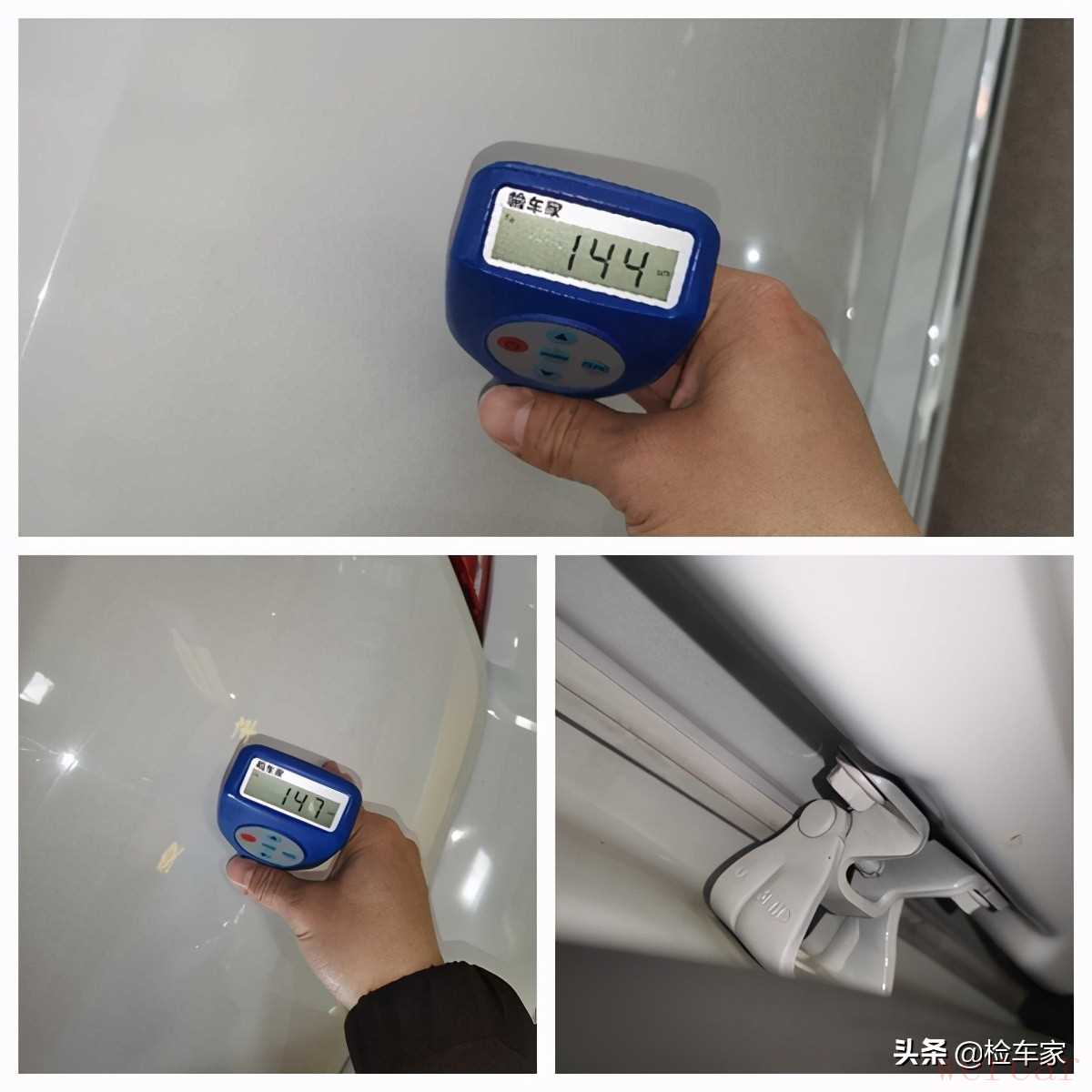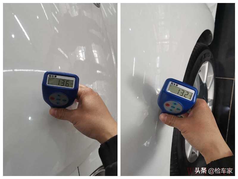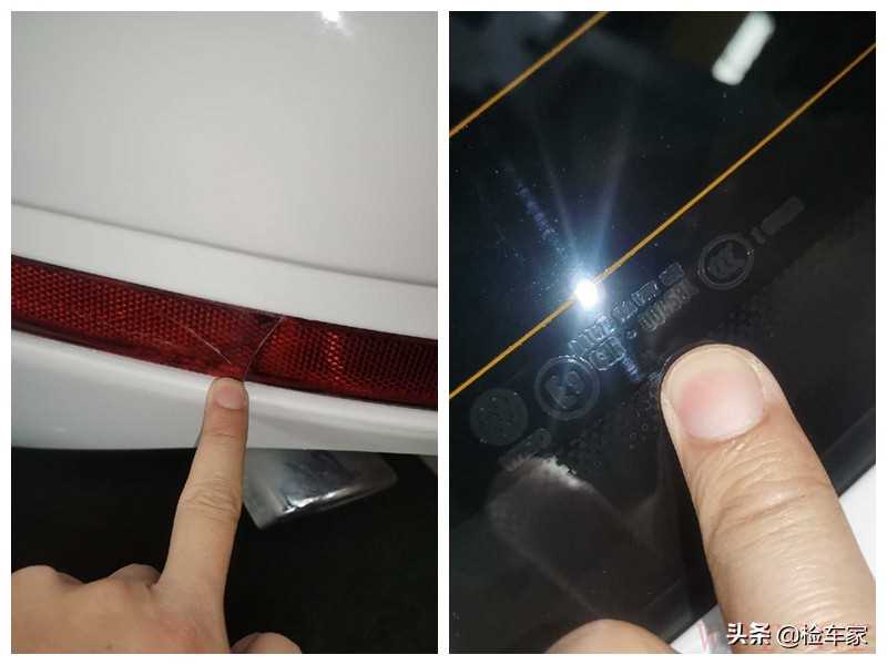 后杠上的反光板破了个口子,要是介意就需要更换了,后杠漆面橘皮严重,这且不说,摸上去还凹凸不平,有刺手感,这喷漆工艺也就值个150块钱;图片上可能看不清,后挡风玻璃用的是2012年出厂的玻璃,而全车其它的玻璃都是14年生产的,极大可能是更换的库存件。这一圈观察下来,大大小小的瑕疵还是挺多的,不过暂时没什么硬伤,下面拿出专业设备检测漆面的具体情况吧。