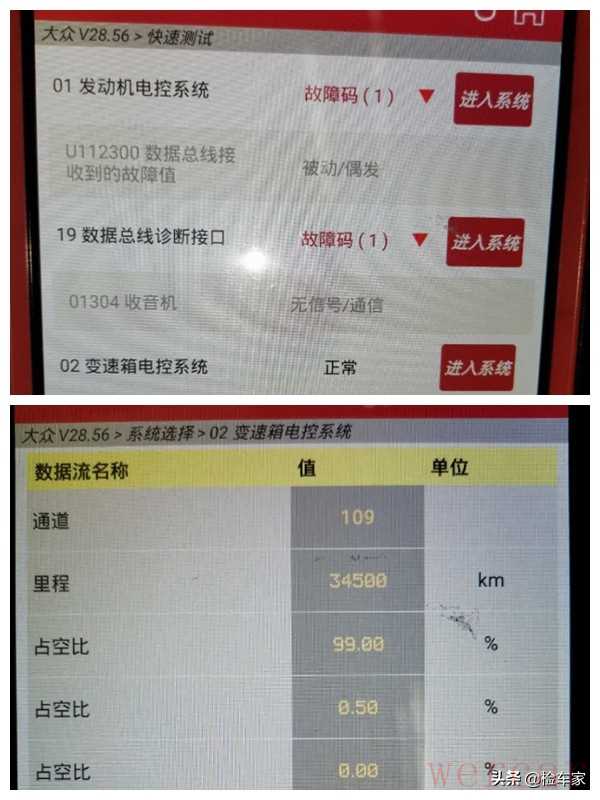 接下来我连上OBD读取电脑,发现只有两个偶发性的故障码,没有偶大碍。同时我顺带把功能试了一下,发现左侧后视镜不能电动调节,而且电机也没有声音,可能是电机坏了,要是得换后视镜总成的话就有点贵了;然后主、副驾驶玻璃升降的时候会有干涩的摩擦声;等功能试完,电脑公里数也读出来了,可以看到确实只有3万多公里实表,一年只开了几千公里,车况保养得好也就不意外了。