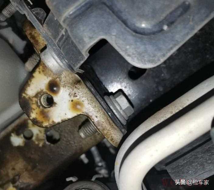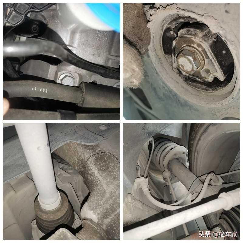 然后从底部看前纵梁,除了糊得有油污,倒是没有什么异常,而且能看到防撞梁螺丝没有拧动痕迹,没什么大问题。