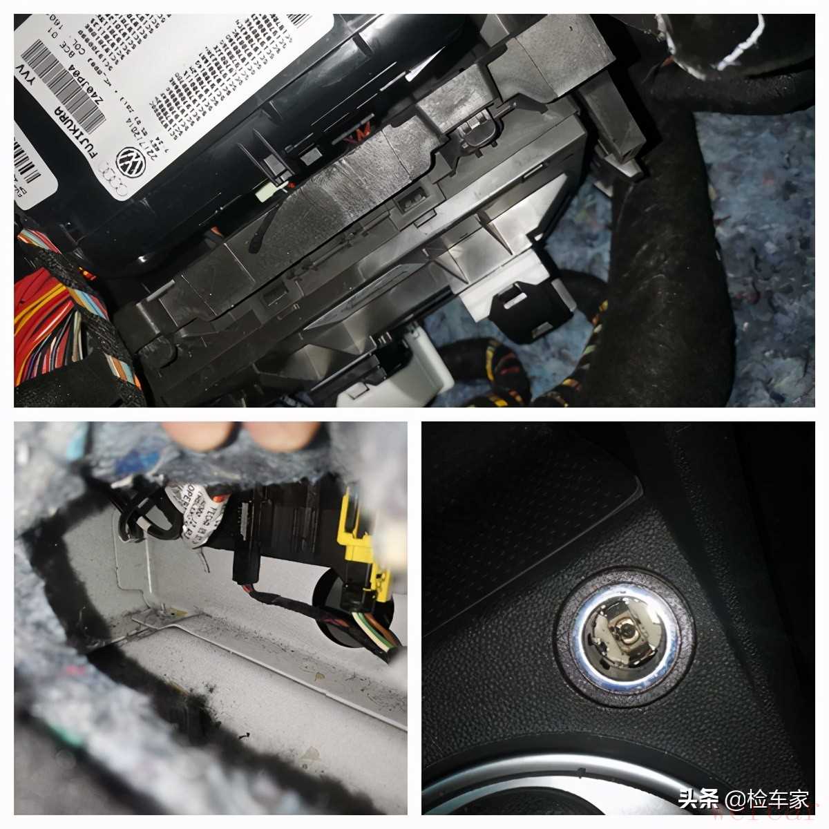 然后我为了排除泡水,把手机伸进仪表台内部,可以看到线束很干净,没有泥沙残留;并且地毯掀开一个角,内部也没进水的痕迹;电源处也正常,我个人猜测锈蚀是因为洗车导致少量进水,或者是停车环境潮湿导致的,并不是水泡。