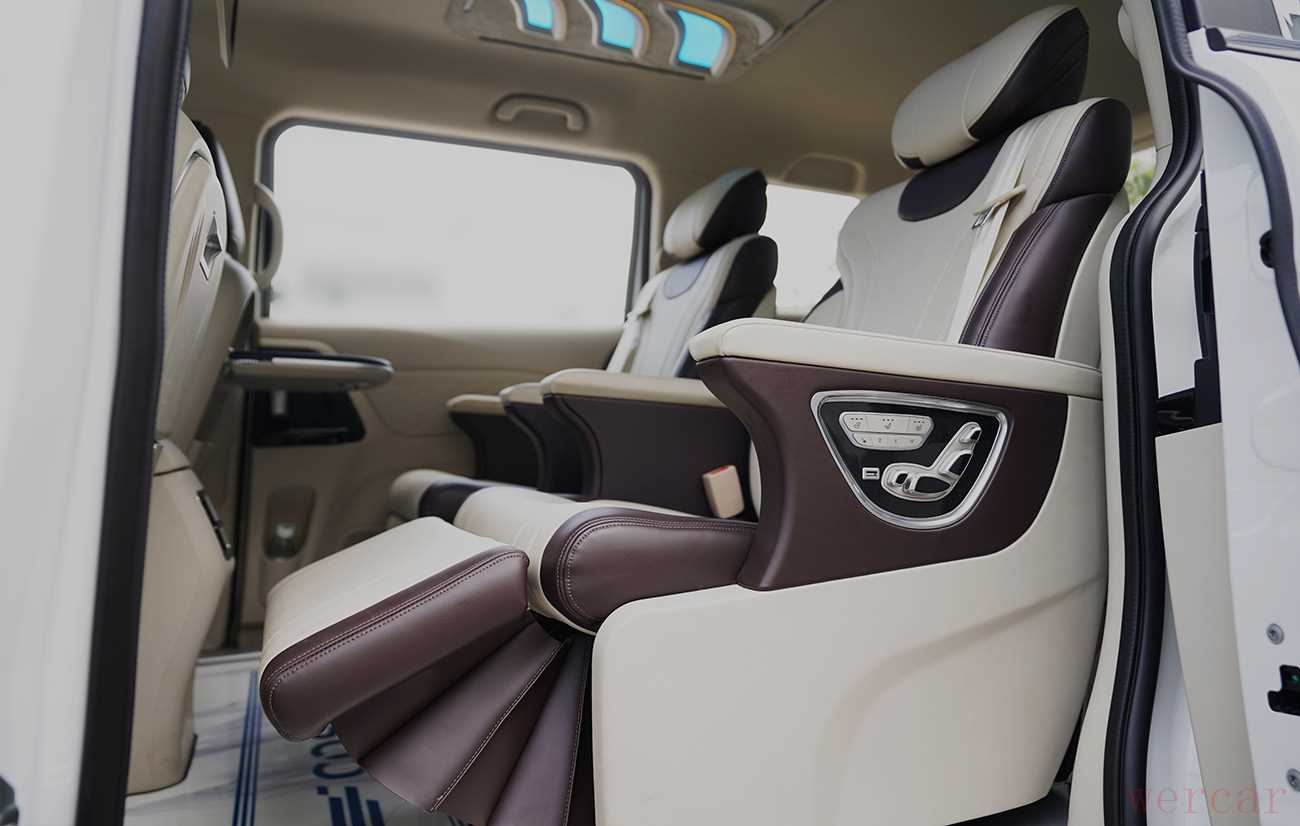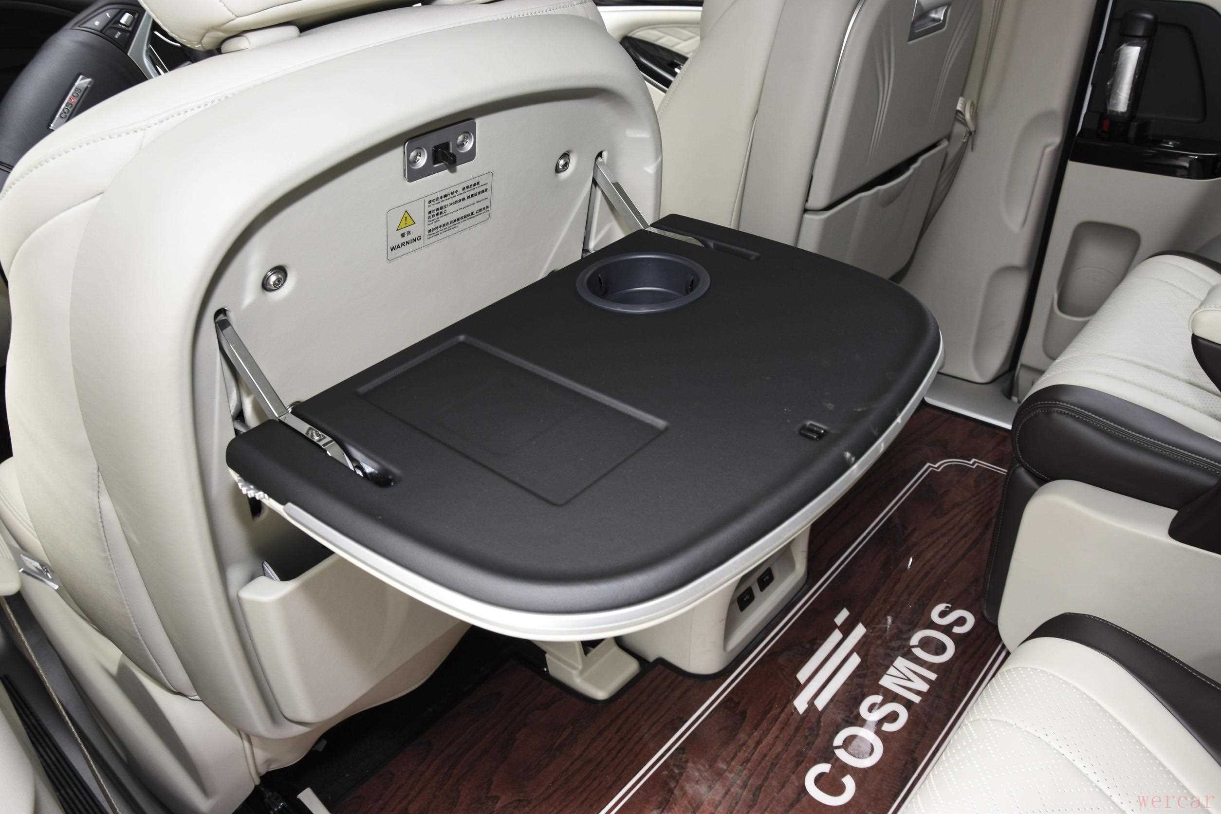 而此次新款车型最大的亮点就是第二排,新款的第二排换装了两个航空式的座椅,除了常规的电动靠背、坐垫以及腿托调整,这个新的座椅还能够360度旋转,搭配前排靠背小桌板以及星空式的车顶,营造出了很好的豪华氛围。