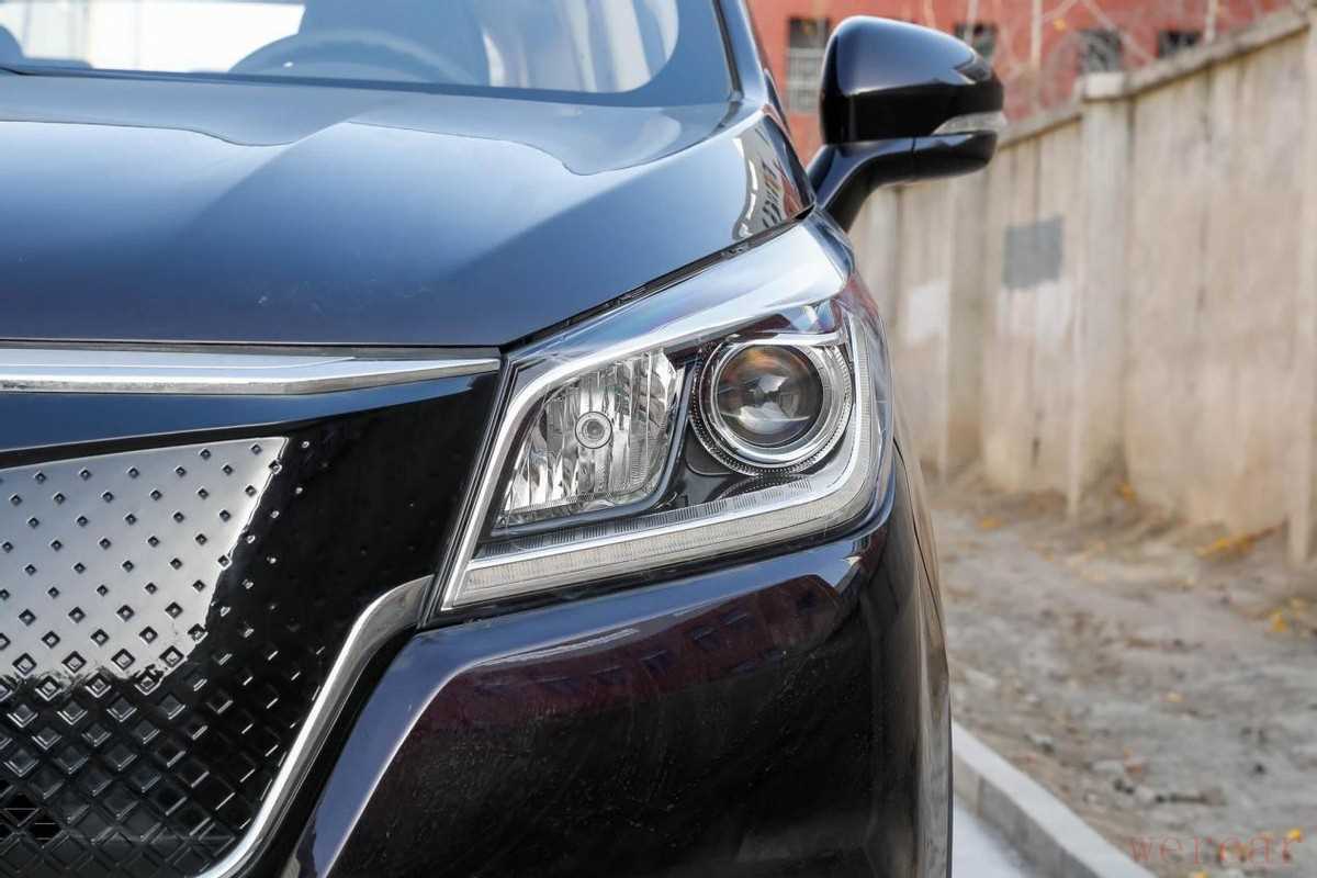 两侧为一体式大灯,但光源为卤素,造型简单功能也比较少,在这个价位算是比较少见的,也是一个小小短板。大灯可以调节高度,有延时关闭功能。优点是大灯罩和格栅连接,整体造型融为一体,看起来比较大气。