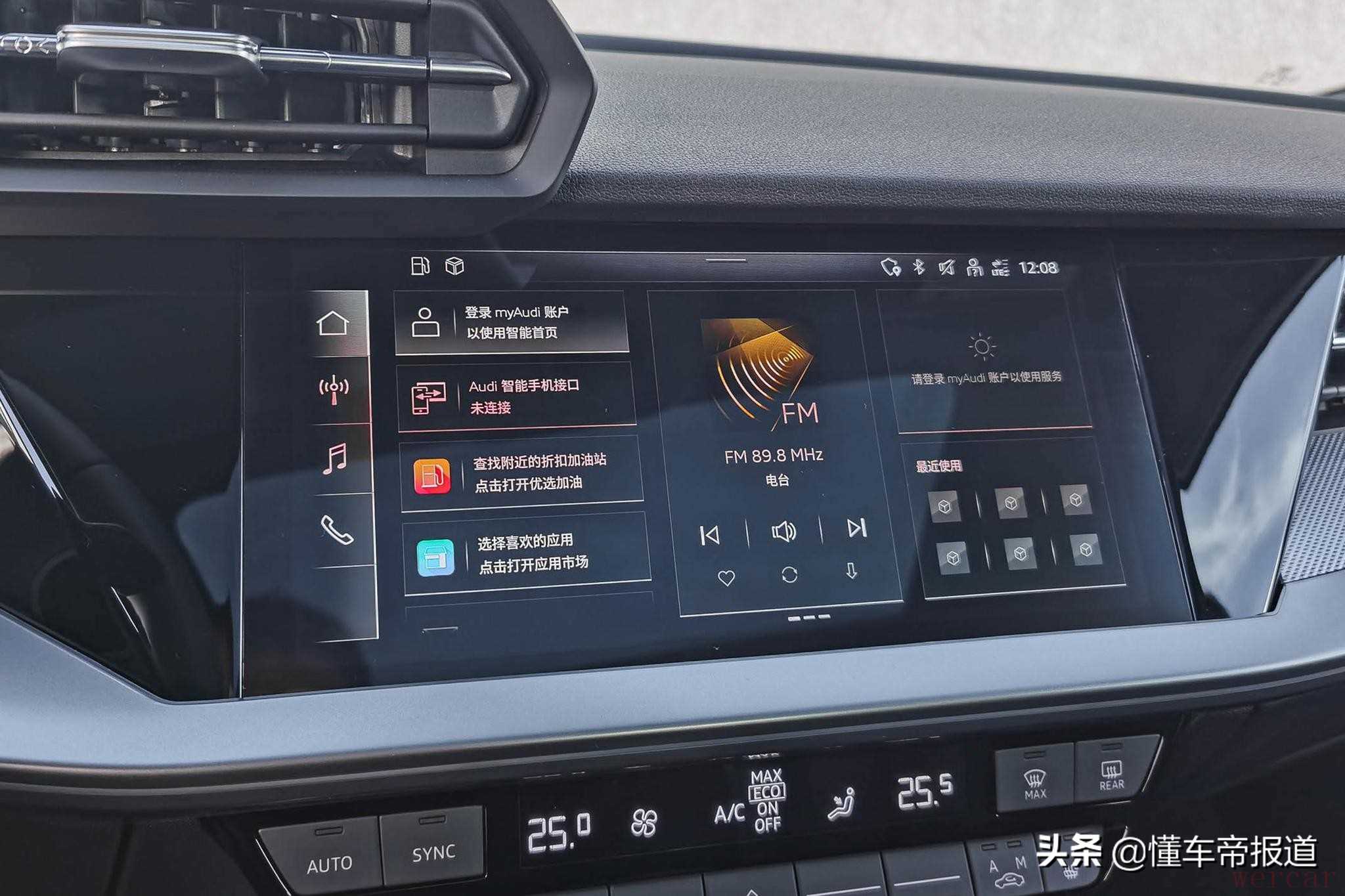 全新奥迪A3L三厢车型将标配10.1英寸中央触控式屏幕以及10.25英寸全液晶仪表盘。中控屏支持触控操作以及声学反馈,所以取消了此前挡把区域的MMI控制旋钮,其匹配了MIB 3模块化信息娱乐系统,计算能力是现款MIB 2的十倍,屏幕系统的反应速度以及显示效果均有所提升;其支持Wifi连接、导航、手机控制车辆、手机互联(苹果、安卓)等一系列功能。