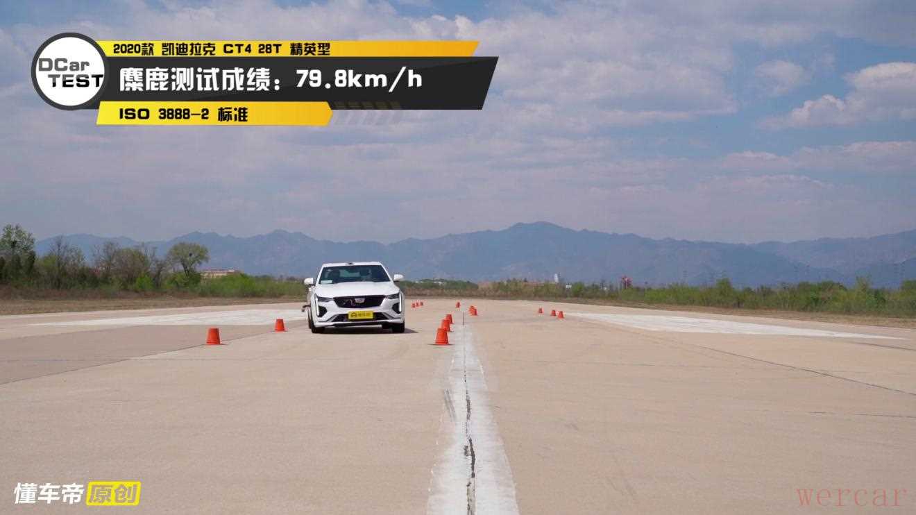 麋鹿测试环节,凯迪拉克CT4在八达岭机场的水泥地上创造了79.8公里/小时的成绩,非常惊艳。从整个测试过程中可以看出,CT4通过麋鹿测试时的车身姿态非常稳健,底盘很扎实。整个测试中,ESP表现很突出,介入积极但不突兀,结合精准的转向系统,CT4在这种相对极限的状态下依然保持着不错的可操控性,最终获得了非常优秀的麋鹿测试成绩。