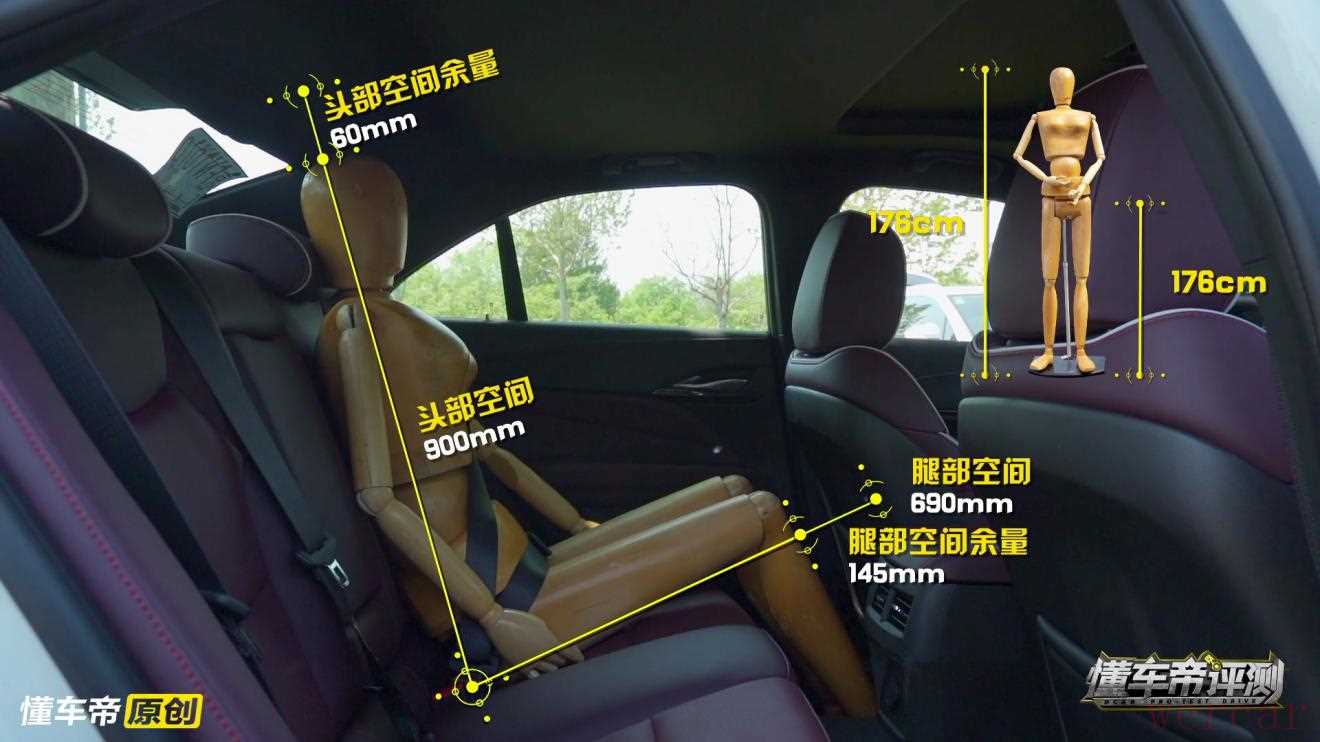 对于CT4这台车的空间本身就没什么预期,实际测量之后,这台车也确实没给我们什么惊喜。我们将前排调整好950毫米的腿部空间之后,后排空间看起来就已经不是很宽裕了。经过测量,此时CT4的后排腿部空间只有690毫米,可以说是非常局促了,如果前排坐了一个一米八的壮汉,后排再坐人基本就很难受了。