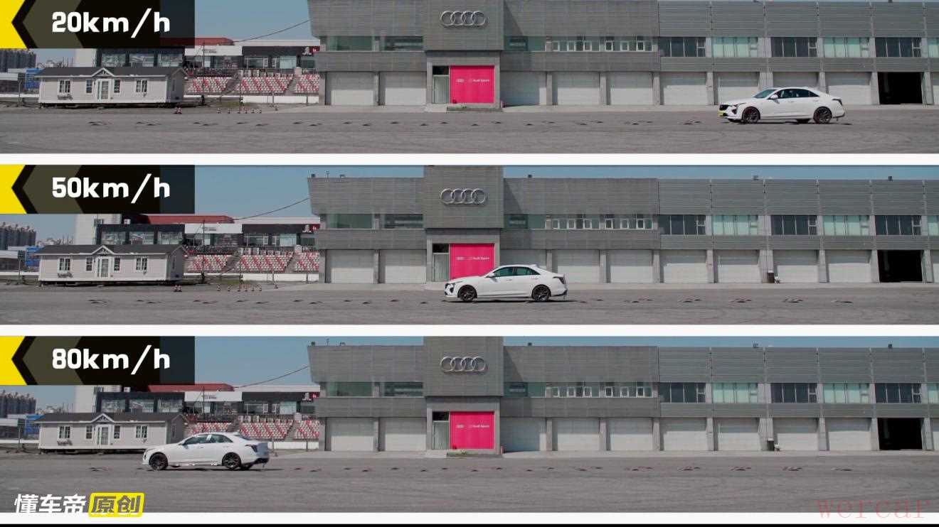 我们还是按照惯例,分别以20、50、80的时速通过减速带。在以20公里的时速通过减速带时,CT4相对偏硬朗的底盘风格体现的还是很明显的,坐在车内能明显的感受到车身的晃动。虽然舒适性一般,但好在CT4的底盘非常整,没有一丝丝发散的感觉,而且坐在车内也没有听到异响。