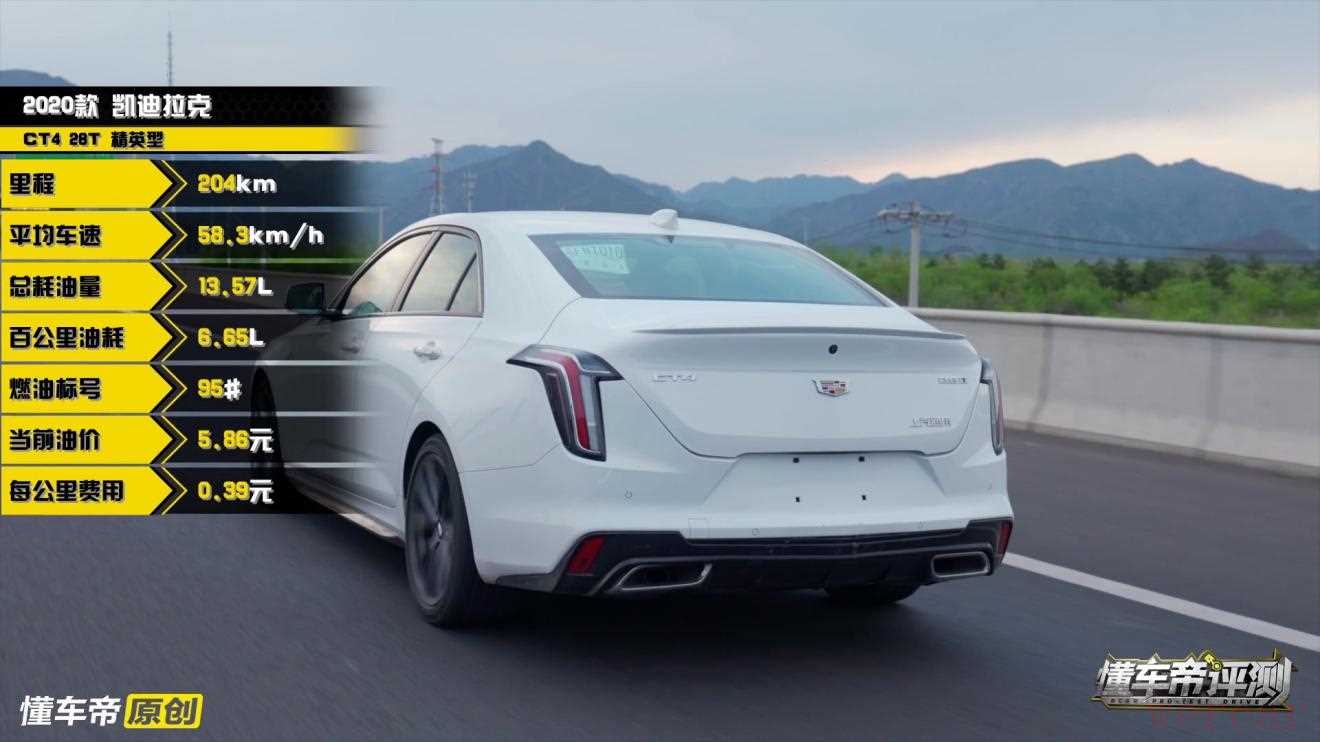 油耗方面,我们按照懂车帝标准油耗测试路线,绕三环四环各一周然后直奔八达岭机场附近的加油站,全程204公里。由于测试时路况相对比较好,没有发生拥堵,所以最终的平均时速相对比较高,达到了58.3公里/小时。在这种偏向高速行驶的状态下,凯迪拉克CT4最终的油耗是百公里6.65L。