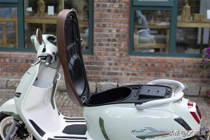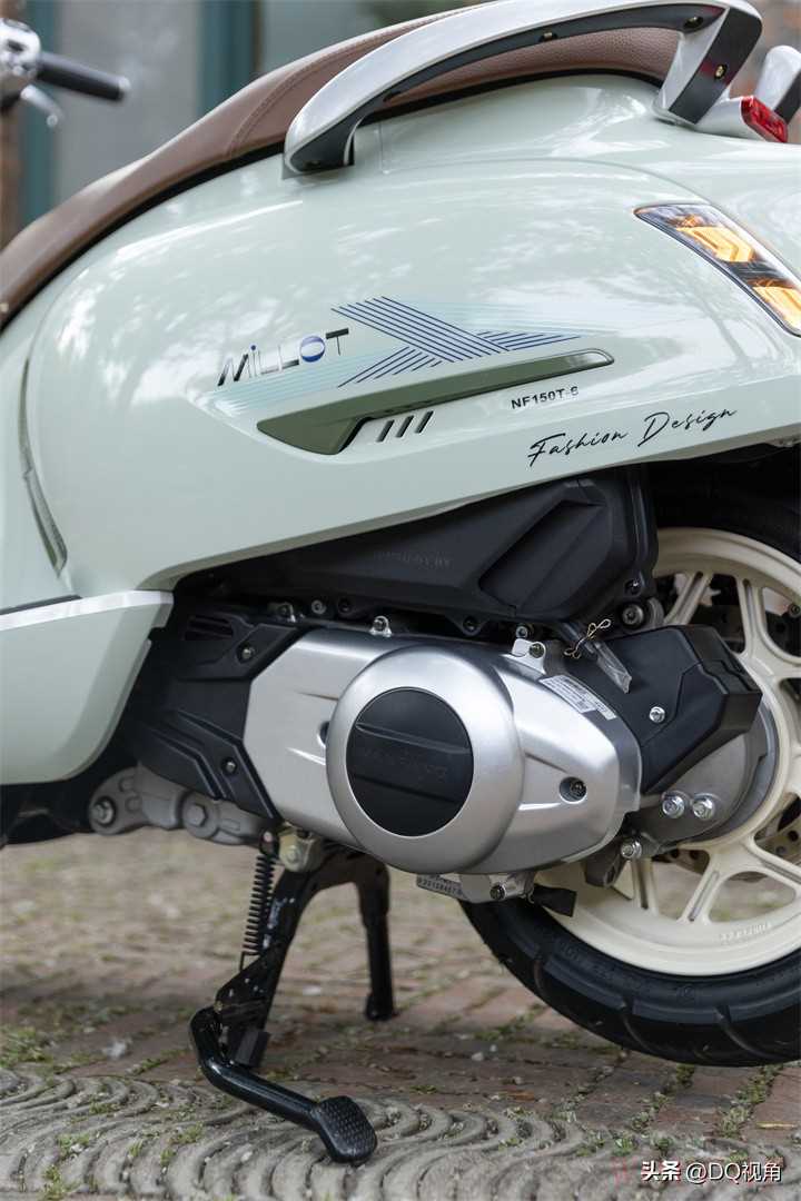 米乐150作为一款复古踏板,外观方面和我们常见的一些同行竞品较为接近。矩形的前脸、平踏的设计,以及乳白色的轮毂、和镀铬的前脸格栅及后视镜。虽然元素看起来都差不多,但组合起来好看才方显功力。毫无疑问,米乐150的外观协调度非常高,全车无棱角设计也让它的亲和力极强,非常适合温柔的女骑城市通勤。