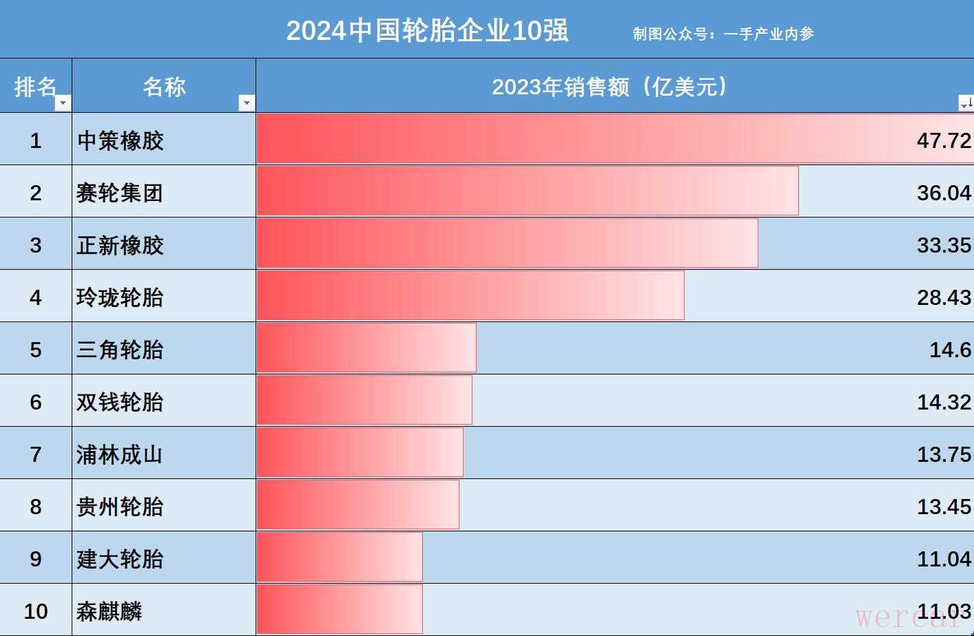 另附:2024中国轮胎企业10强公司榜单,数据源于《Tire Business》。