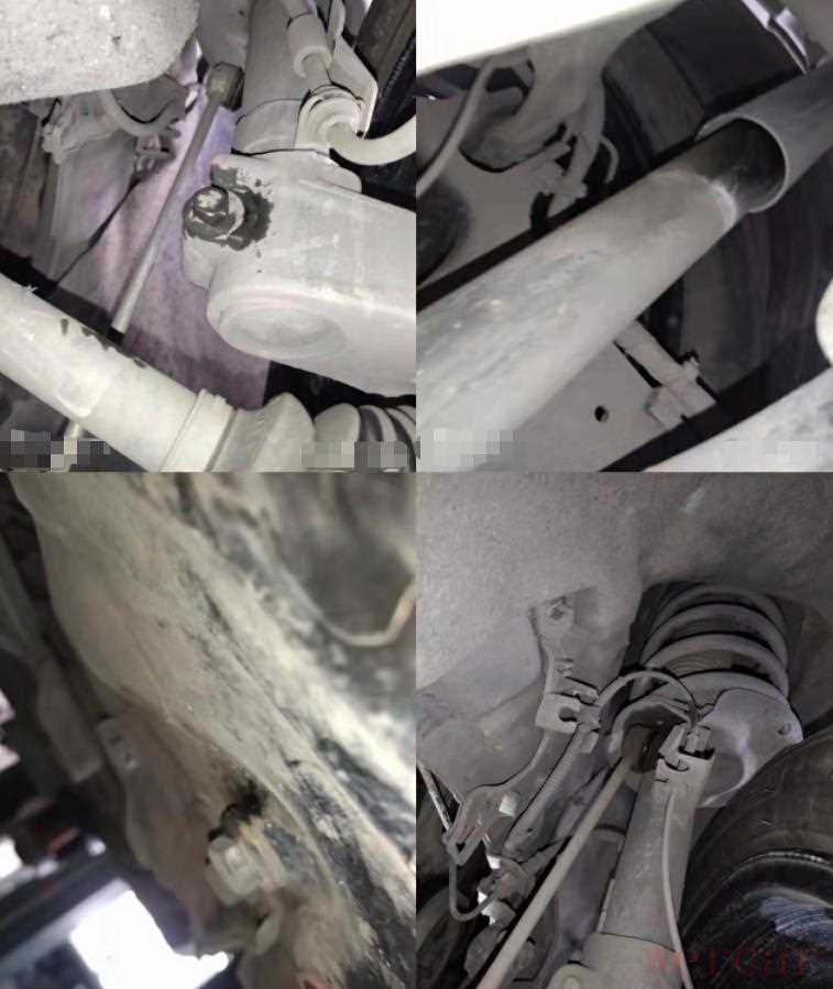 最后上架检测底盘,发现更换了一些异损件,后面的减震器更换了,但还是漏油了,估计减震器换的不是很好,所以又导致漏油了,后期还要再进行更换才行。