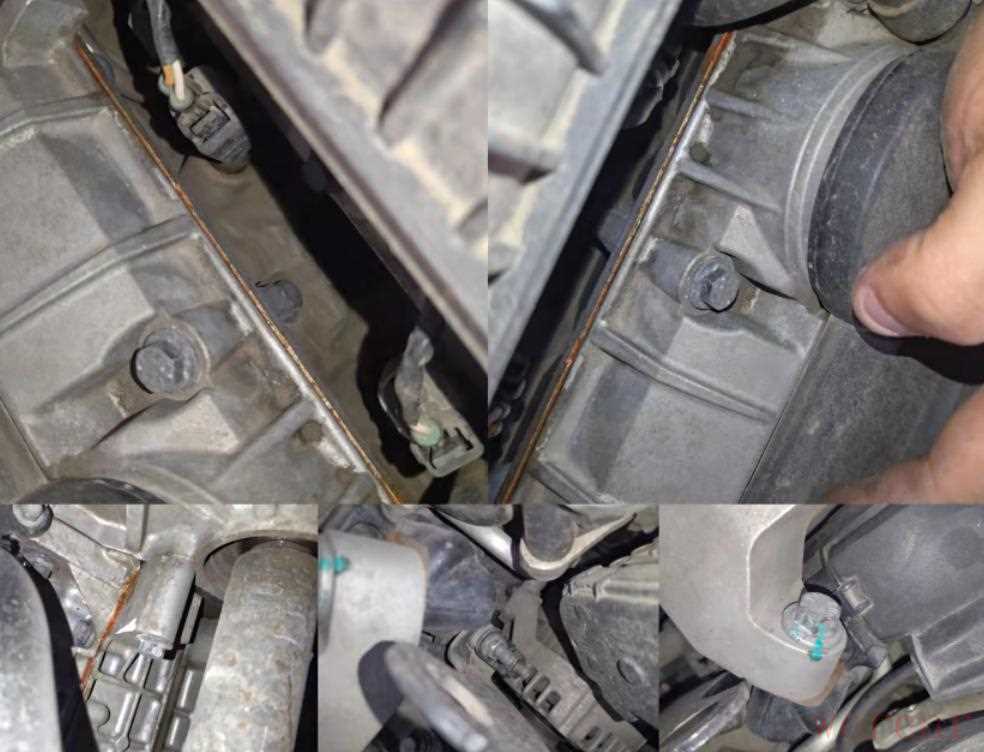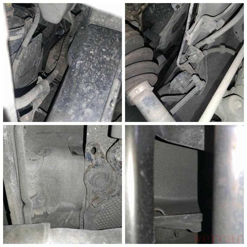 从底盘再检查一下发动机变速箱底部,可以看到下面目前都没有渗漏痕迹,看来之前发动机修复得还不错,给维修师傅点个赞,有我当年的风范。