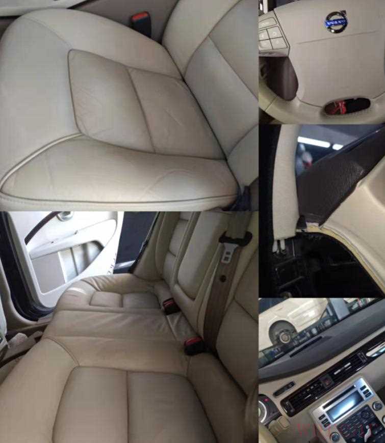 可以看到后排座椅磨损很大,车内全拆,安全气囊、仪表台、仪表盘都是重新修复的,车内很多地方修复,估计公里数不小,看这磨损,没有个20几万公里下不来!等一下读OBD看一下能不能读出公里数,但沃尔沃一般是读不了公里数的。