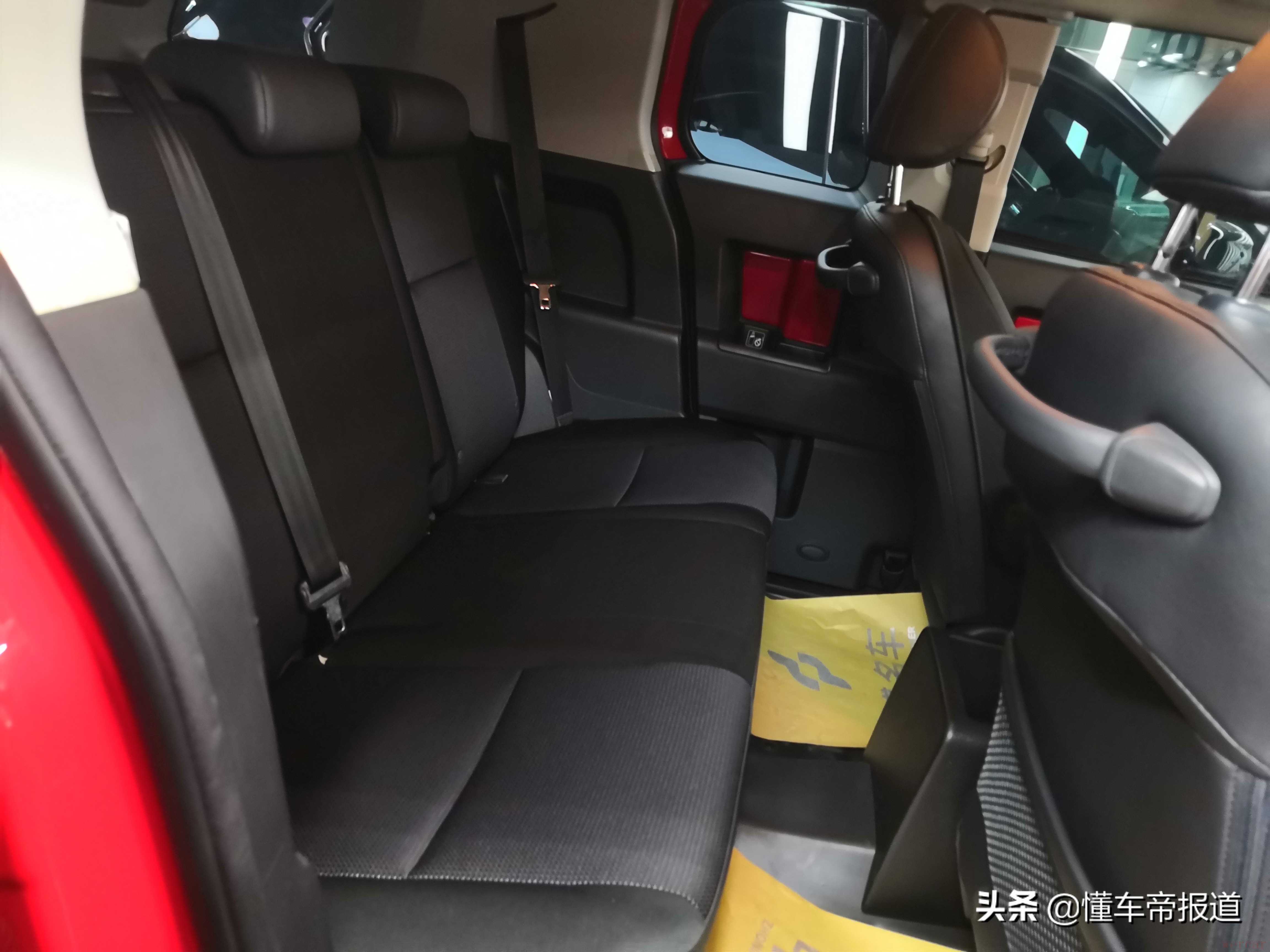 后排座椅只能用来应急,只比MINI大一点有限,并且上下车也极为不方便,不打开前排门的话是无法开启后排门的。但丰田却在小小的后门上安排了上下两层储物空间,可能也是考虑到应急救援其他越野车主所设计的吧。