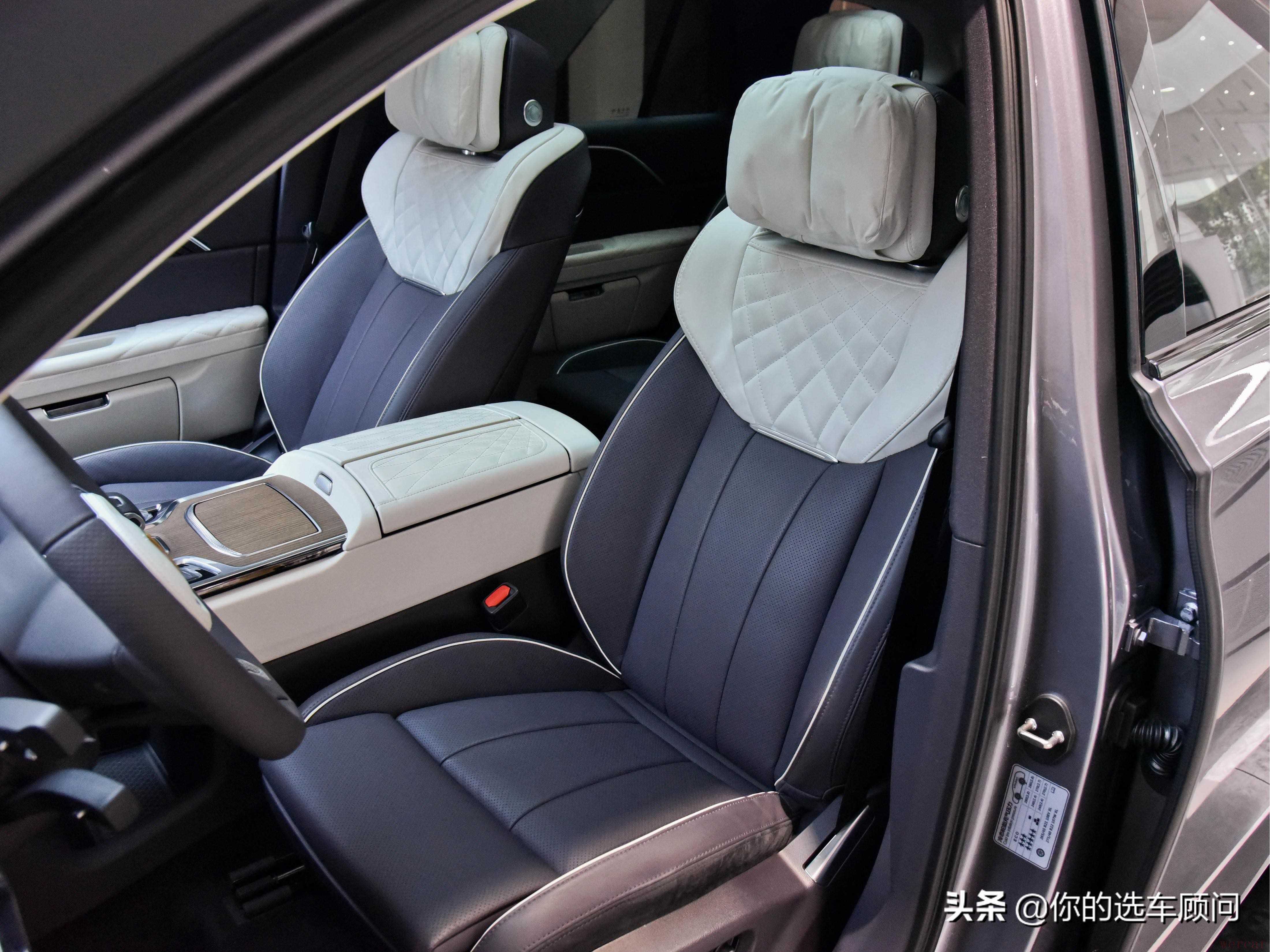 而第二排座椅基本保持了第一排座椅的感受,造型设计基本类似,并且也保留了电动调节,而得益于车又大又宽又是纯电平台的优势,红旗E-HS9还拥有非常宽的过道以及舒适的第三排空间,哪怕是同尺寸的燃油顶级旗舰SUV放在红旗E-HS9面前,空间上红旗E-HS9都是有领先优势的,更何况纯电车型噪音水平上先天优势明显,再加上红旗E-HS9悬挂舒适性做得也到位,从氛围以及体验来说,红旗E-HS9是一台非常优秀的豪华旗舰。