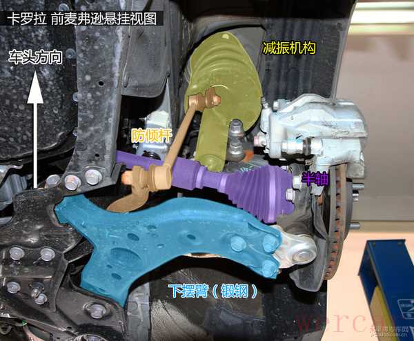 卡罗拉的悬架结构具有结构紧凑,质量轻,响应积极,操控性好的优点。而前悬挂下摆臂为锻钢材质,前悬挂轴承座为铸铁材质。