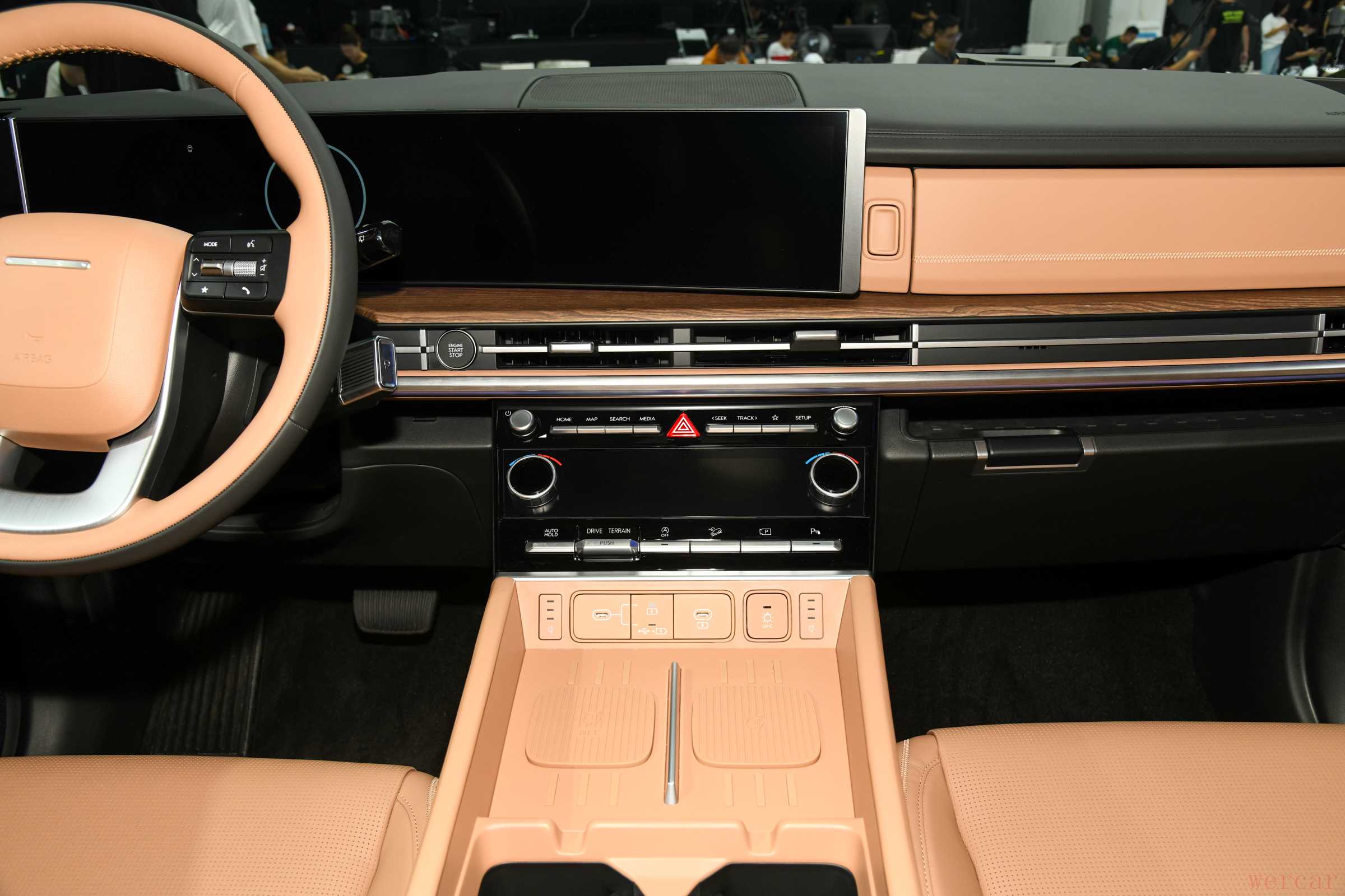 三幅式多功能方向盘造型运动,采用真皮材质,支持上下前后四向调节,并配备了旋钮式怀挡功能,中控屏下方的区域比较平整,显得比较整洁,配备了12个BOSE环绕式音响 ,全系采用前排多层隔音玻璃,座舱静谧性良好,娱乐性也得到了保障。