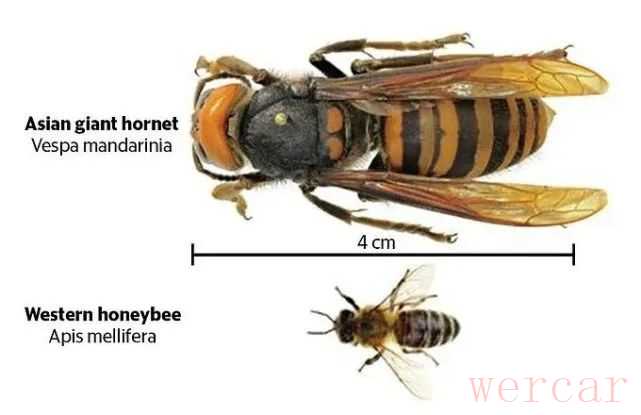 亚洲大黄蜂体型(上)和蜜蜂体型(下)的比较