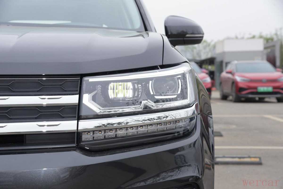 外观方面,整台车的外形依旧是延续大众家族经典的设计风格,自然构成相对较高的品牌辨识度。但在细看之下,途岳的前脸结构和途昂是非常相似的,包括中网和灯组内部的线条设计,再加上机盖隆起的线条,使得车头有着不错的厚重感。左右两侧大灯均采用LED光源,且具备自动大灯功能;前雾灯是卤素光源,且兼备转向辅助功能,能为驾驶者提供更好的照明效果。侧面腰线平直硬朗,银色行李架搭配18英寸轮圈,进一步提高外形的运动感。车尾造型凹凸有致,采用较多横向线条设计,使其整个车尾更加立体饱满。
