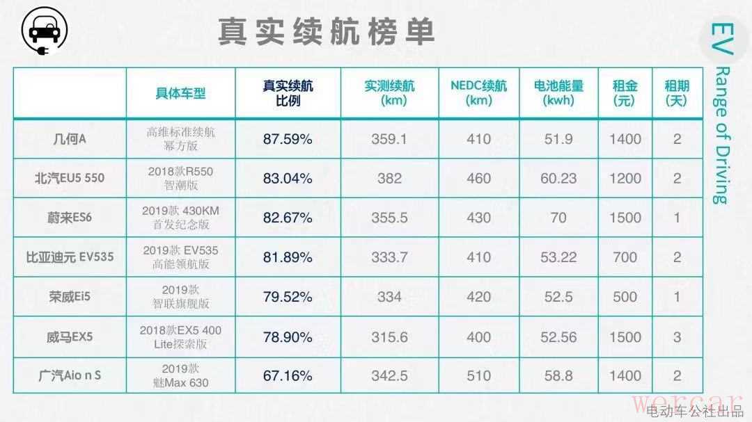 这是媒体测评过的部分热门电动车实际续航里程,其中包括e2。