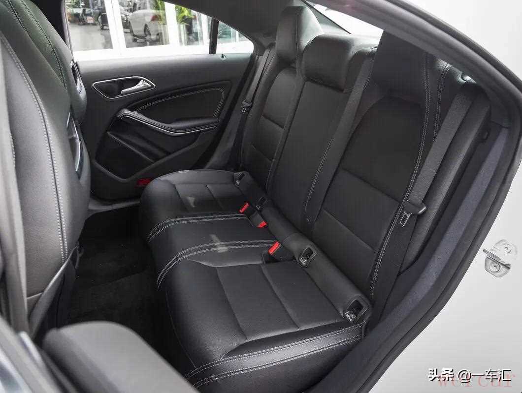 现款CLA200动感型车内座椅采用了仿皮材质,前排座椅为运动化的一体式设计,能够带来更强烈的包裹感,前排主副驾驶位均为多向手动调节,包含腿托调节功能。后排座椅设计的比较平直,地板中间的凸起,对该位置乘客舒适性会有些影响;后排中央扶手和空调出风口均没有配备,车型搭载了可开启式全景天窗,实际面积并未达到一般全景天窗规格;后备厢常规容积为470L,后排座椅靠背支持按比例放倒,进一步提升车内实用空间。