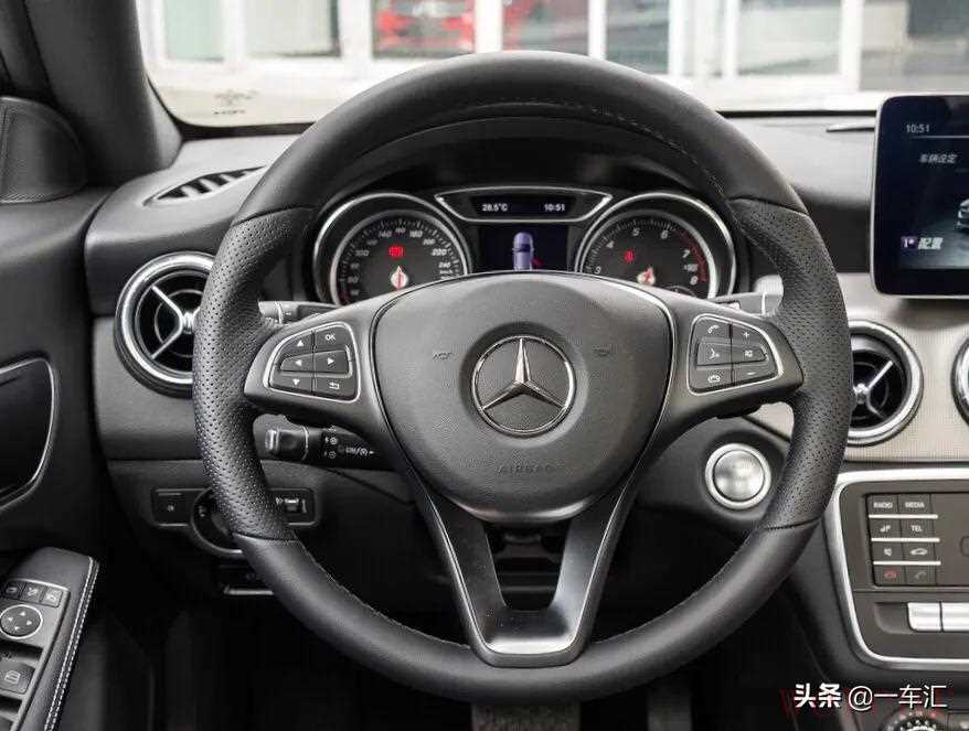 内饰方面,现款CLA车内依然是奔驰家族早期样式,虽然谈不上过时,但与目前新车型相比,在科技感上略显逊色,不过放在同级别车型中,还是具有不错的质感表现的。中控台上方为大面积搪塑材质覆盖,面板处的大块银色饰板,搭配圆形空调出风口,带来一些时尚感,整体做工符合奔驰一贯的高规格标准。