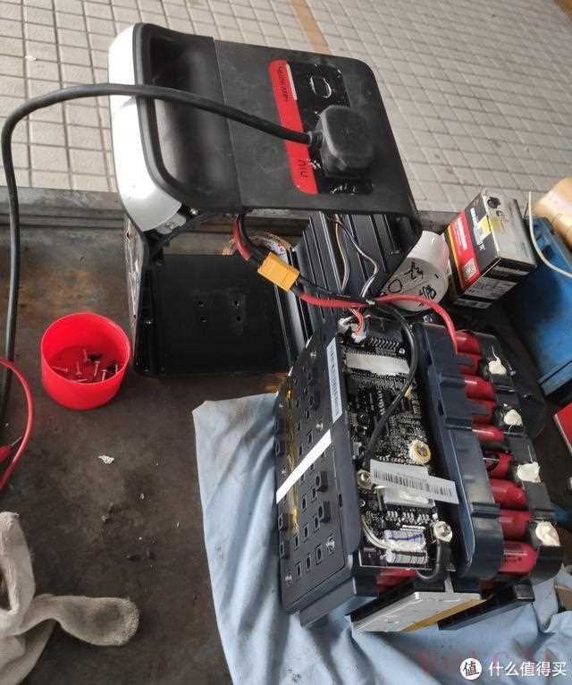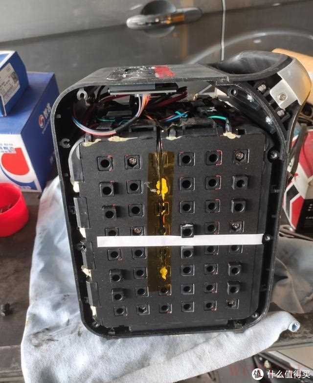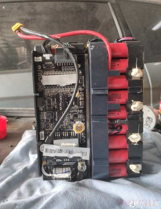 在拆解外壳过程中,我突然意识到一个很严重的问题,上图这块顶配48伏32安的锂电瓶因为半年左右没有充电,已经出现亏电而导致无法通过保护板进行充电。