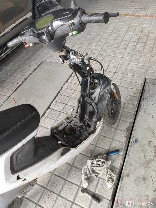上图为已经拆掉护腿板和前壳后的状态,心情好心态好不管拆哪一个零件都很享受,也许这种感觉只有修理工才会有吧!