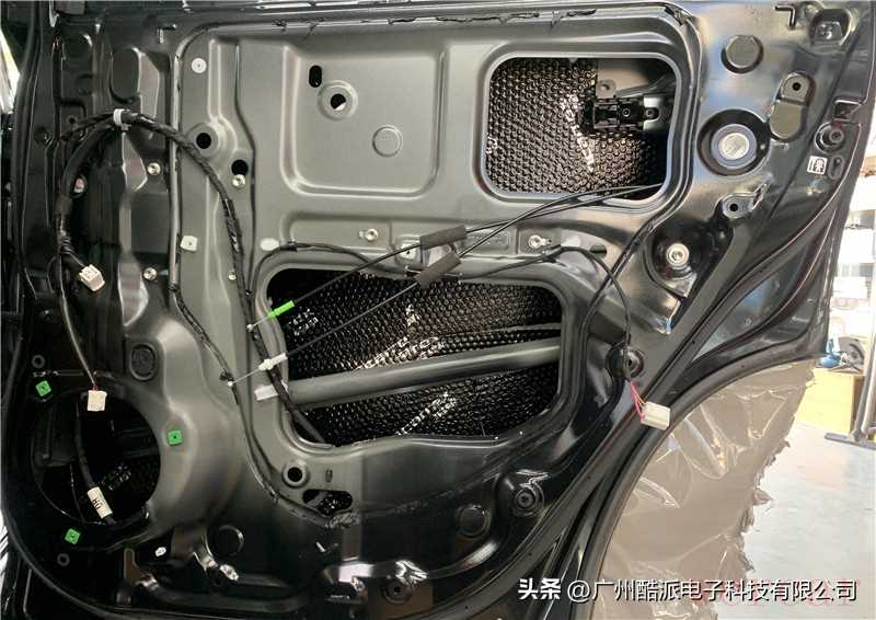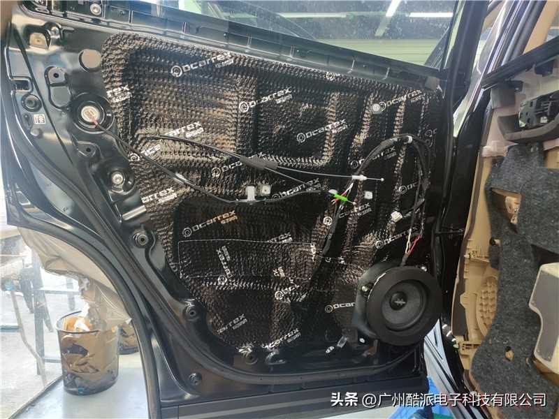 升级的第一步是对前后车门进行双层隔音处理。第一层贴在内侧钢板上,抑制振动;第二层覆盖外层,形成密闭箱体结构。能减少外部噪音干扰,让中低音更饱满。