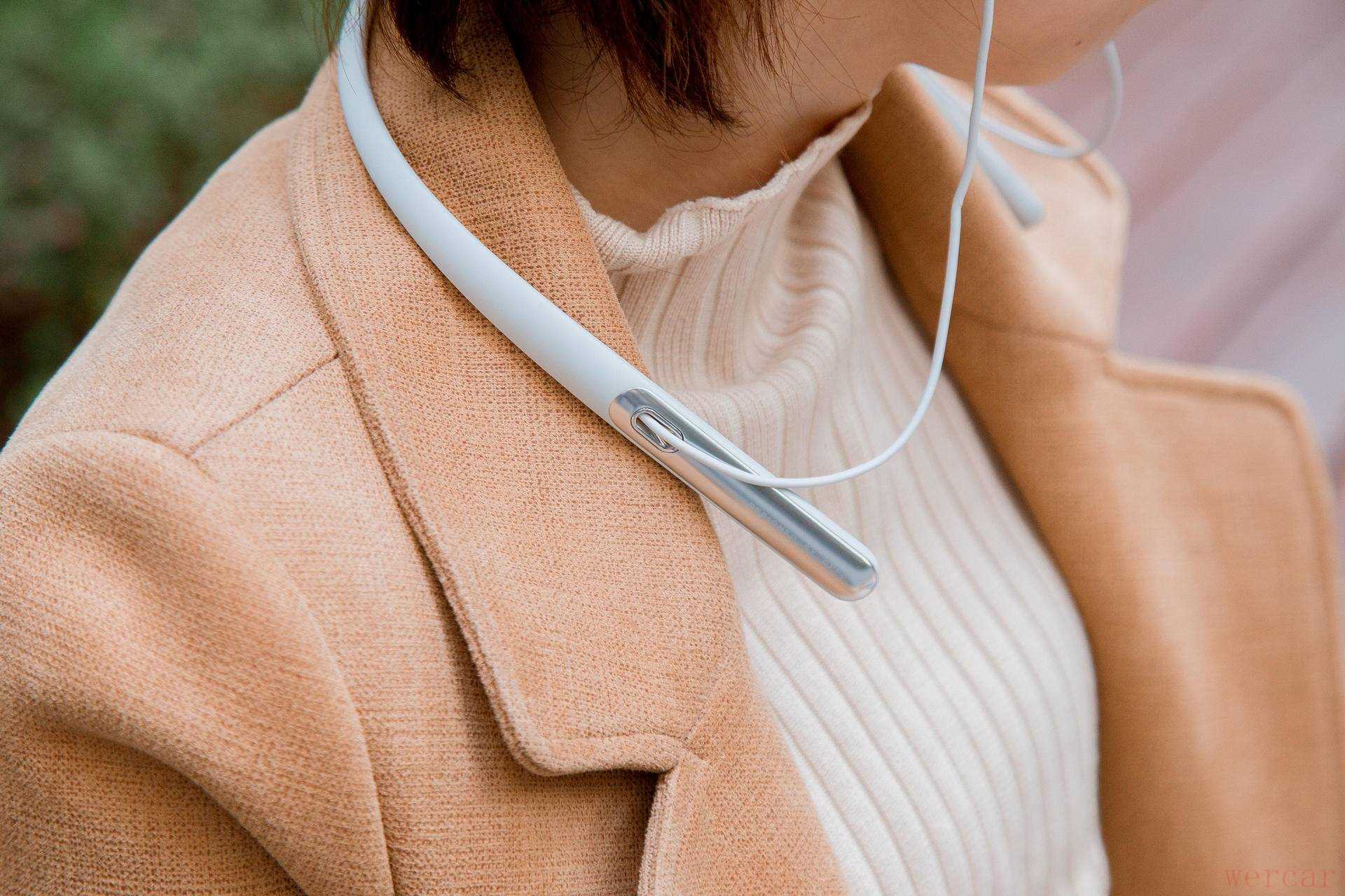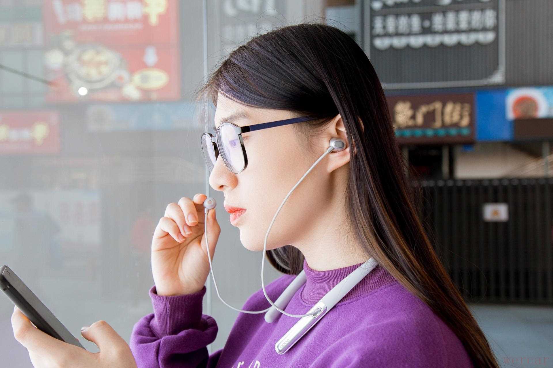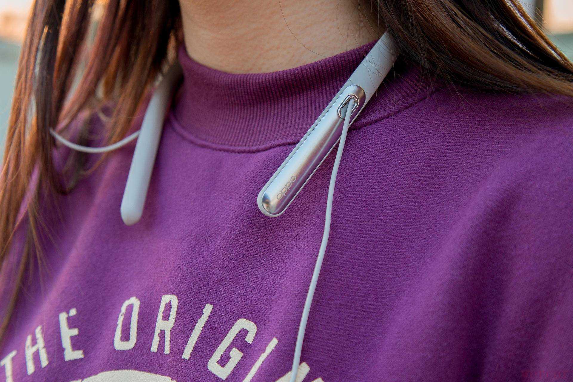 拿OPPO这款Enco Q1无线降噪耳机来说,颈环式的设计,可以方便地挂在脖子上,并且用的是TPU软胶一体成型打造,没有棱角而且材质亲肤,佩戴感还是很舒适的。