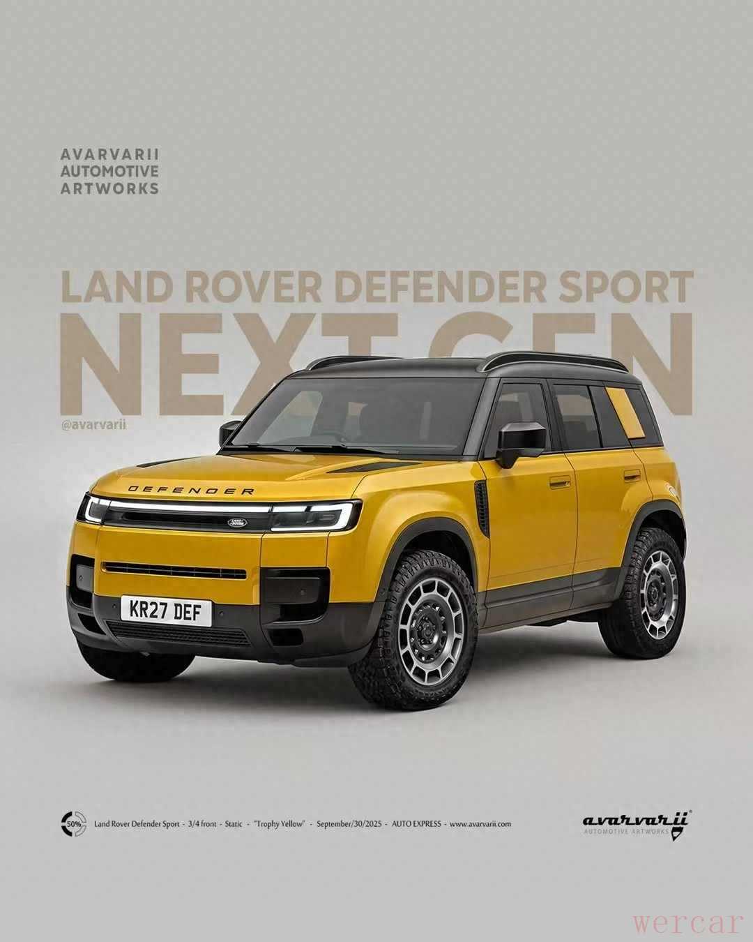 2025年10月,有人传出了路虎发现运动版的渲染图,车还没正式发布,官方也没说什么时候上市,样子跟卫士挺像,方方正正,灯带拉得长,轮拱露在外面,看着结实,但车身比卫士小一圈,轴距也短,定位更紧凑。