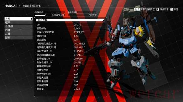 机甲的自定义选项是《机甲战魔》最接近于“装甲核心”系列的一大优点,每台机甲有头部、胸部、左手、右手、脚部、核心处理器这5大自定义装甲的位置,又有右手武器、左手武器、肩部武器、副武器、右后方挂载武器、左后方挂载武器这6大自定义武器的位置,除了“四足”“坦克足”这样的异形部件的缺失,少了一点“纯AC味儿”之外。