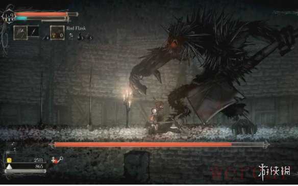 同样的硬核游戏,《盐与避难所》与‘魂’系列相比最大的不同是战斗核心要素不同。如果说“魂”系列的战斗核心是操作上的“精确”——精确找到打击怪物的时机,那么《盐和避难所》的核心则是反应上的“快速”——在NPC怪物反击之前闪避他们的攻击。可问题随之而来,玩家在新手期会对这样的挑战乐此不疲,但是当他越来越得心应手成为硬核玩家时,就会越来越发现一个问题,Boss的攻击方式太单一了。例如游戏序章中出现的那个boss,它的攻击方式实际只有三种,一旦掌握某种方式躲过boss的攻击,就会很容易去机械式重复,直到达到通关的目的。