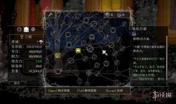 除此之外,每个职业都有与武器系统相辅想成的技能树系统,《盐与避难所》的这个技能树的形象,让我一度想起来《最终幻想13》里的晶球盘。这个技能树囊括了各种各样的技能,而许多强大的技能都位于晶球盘的边缘,如何利用自己有限的资源取得最大的效果,如何与武器系统配合,这就考验玩家能不能预先做好计划了。