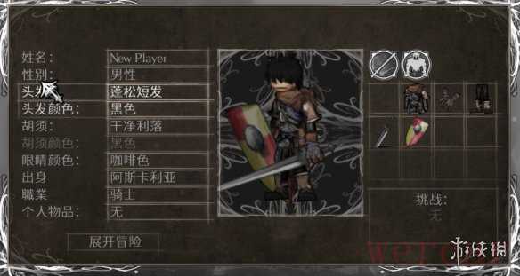《盐与避难所》的画面风格显然承自前作。一进入游戏,首先要做的就是选角,玩家可以在一定程度上定义游戏角色特点。界面UI总体体现出奇幻风格和灰暗色调,为后续游戏的风格定下基调。