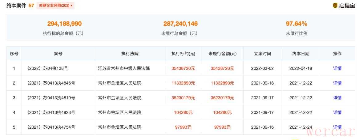 启信宝数据显示,截至今年10月14日,大乘汽车集团有限公司2021年有3条失信被执行人记录,涉及司法案件达400起。其中,终本案件57件,未履行比例97.64%,未履行总金额超2.87亿元,无财产可供执行,这也足以见其背后财务状况。