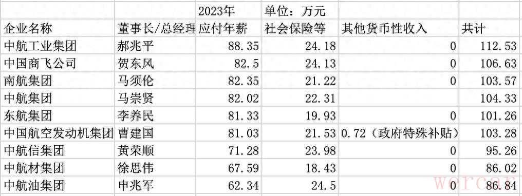 国资委网站近日披露了97家中央企业负责人的2023年薪酬信息,其中包括多家航空上下游的央企。