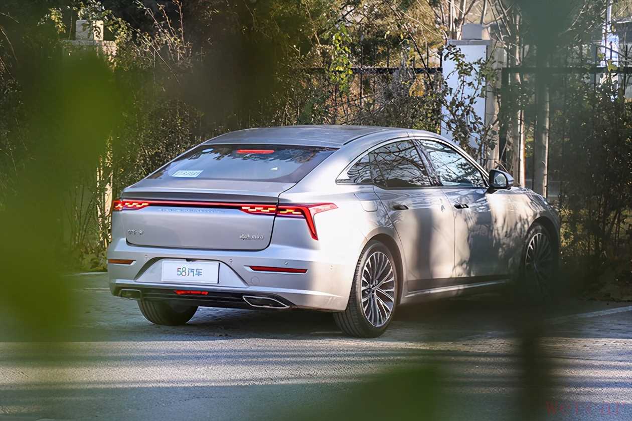 尾部采用了掀背式尾门设计,掀背式造型让尾箱与后风挡融为一体。尾部微微上翘,小鸭尾式的尾箱盖也能起到一定的扰流效果。底部排气为双边共两出的排气形式,后镀铬尾嘴与车尾造型融为一体。