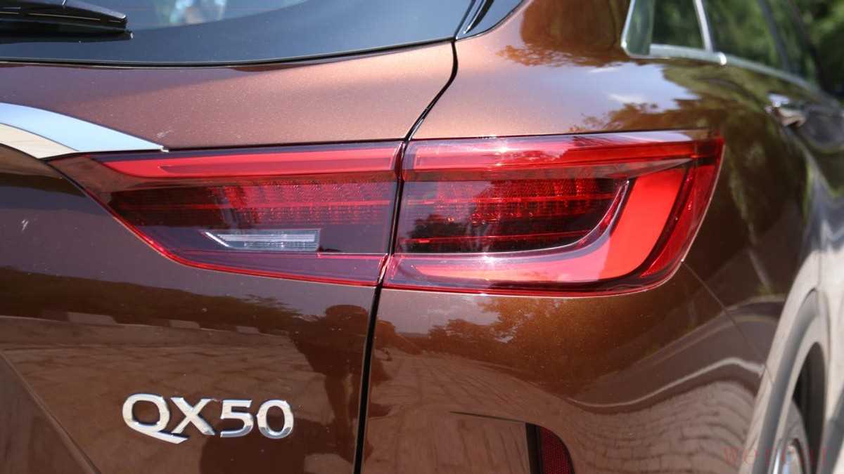 来到车尾,英菲尼迪QX50依旧延续了整车的运动风格。造型犀利的尾灯与头灯相呼应,依旧全部采用LED光源,夜间点亮后的效果非常不错,拥有不错的辨识度。