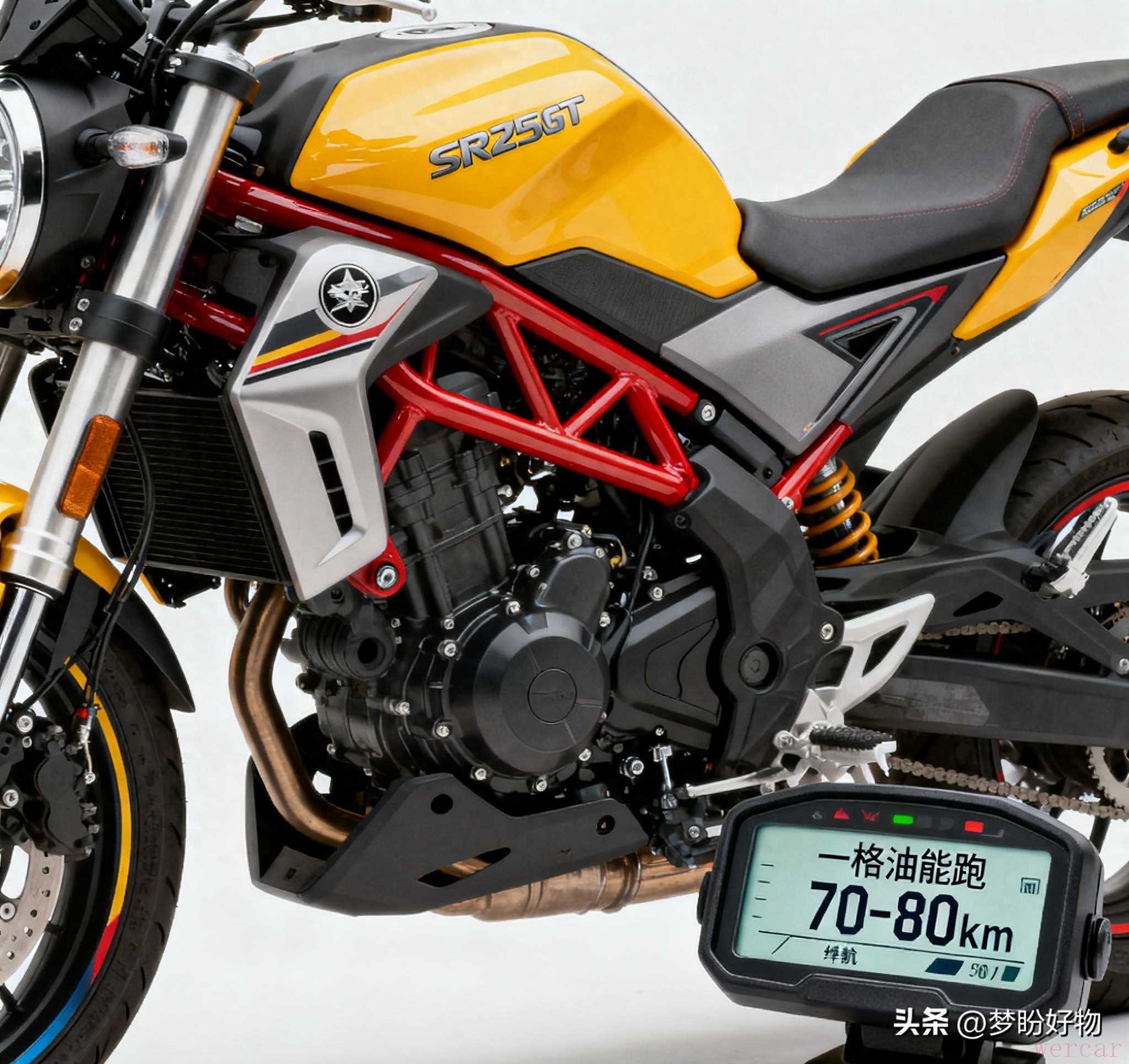 - 动力与油耗均衡:搭载单缸风冷四冲程发动机,最大功率6.1千瓦,日常通勤加速够用;百公里综合油耗2.5升,一箱油能跑220公里,不用频繁去加油站。