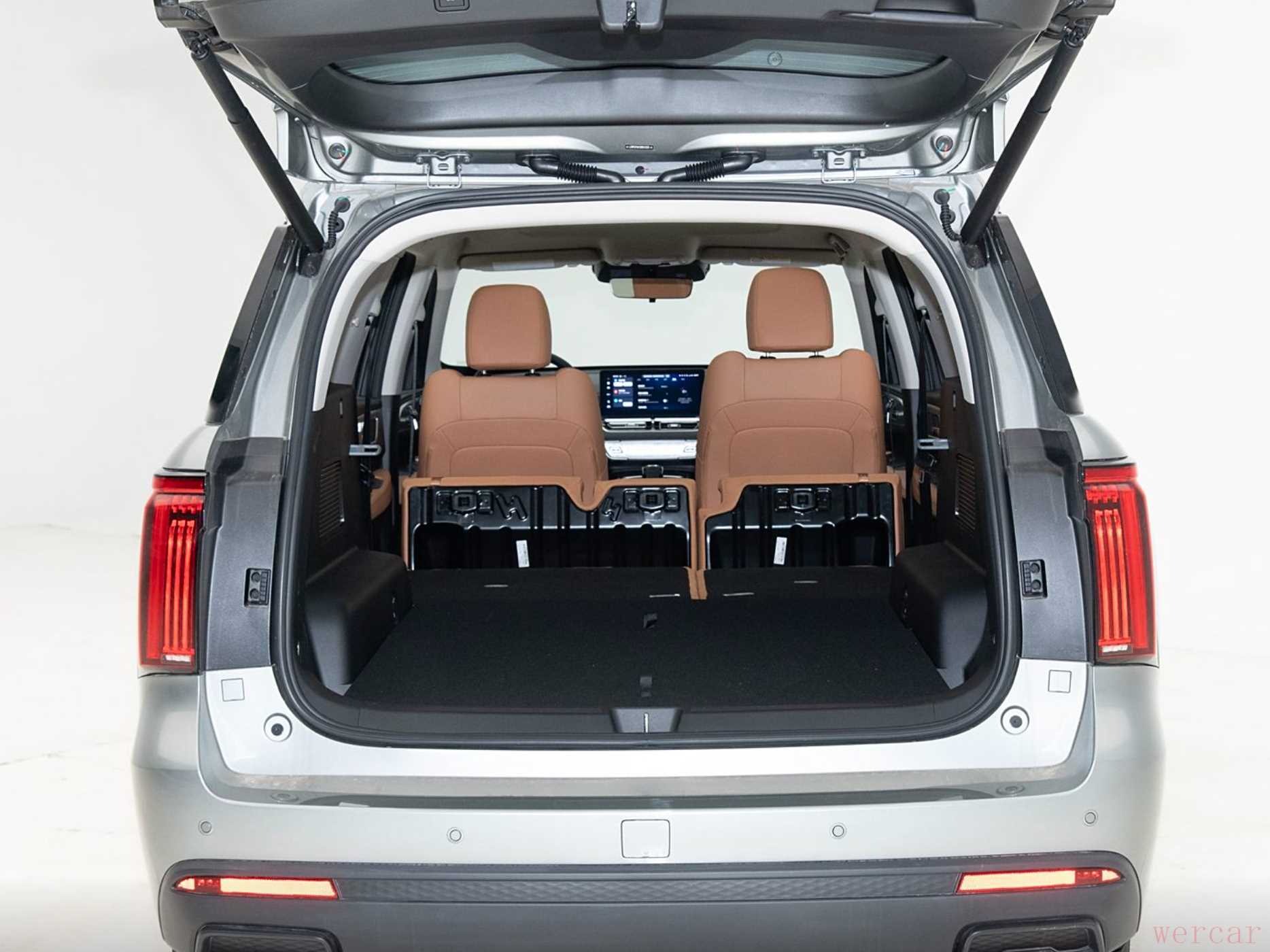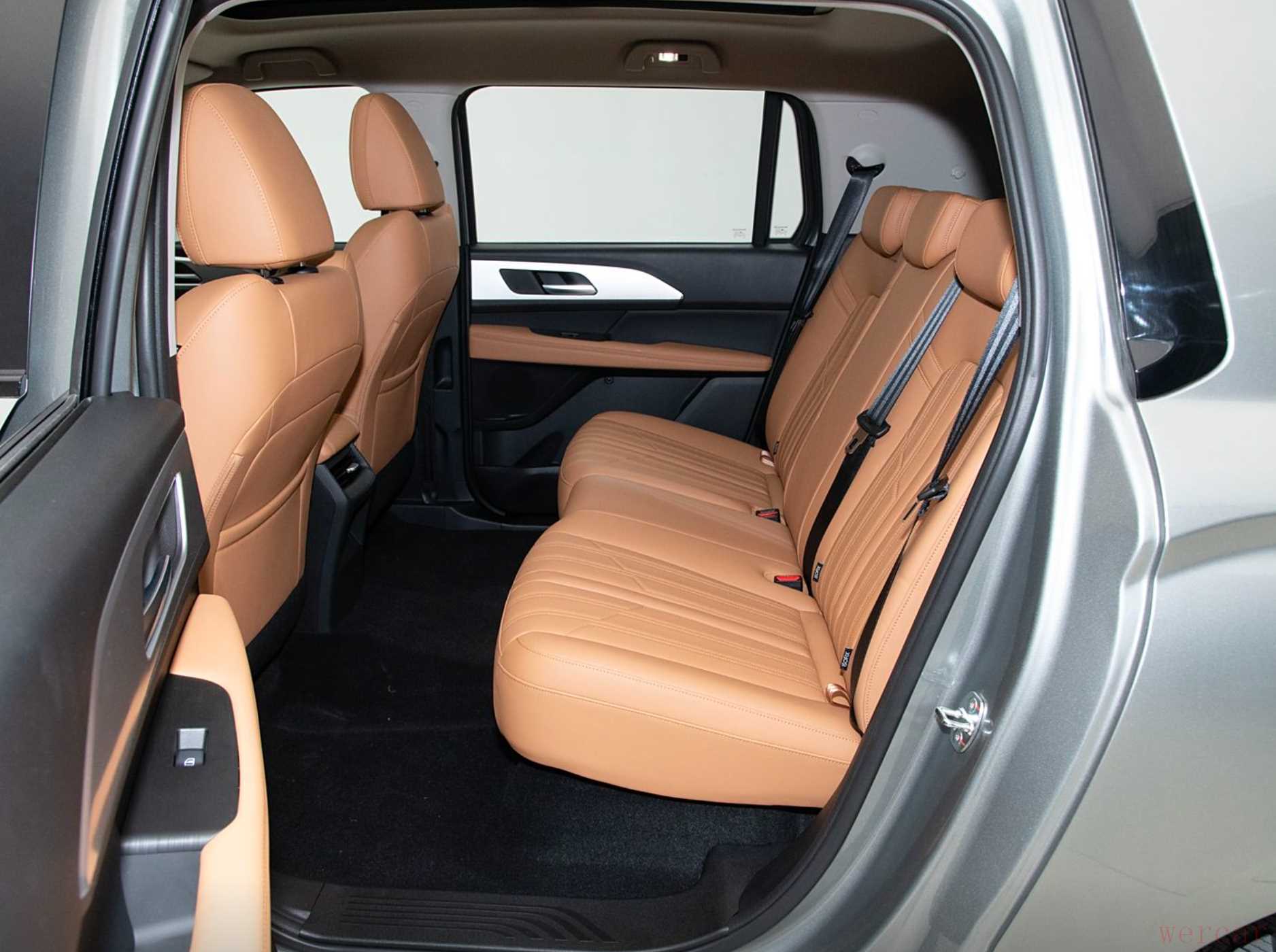整个前排没有花里胡哨的配置,都很实用。相比较第二排比第一排更有看头,第二排座椅支持靠背调节,还有一个独立的空调出风口。乘坐空间也很宽敞,毕竟达到了3米1的轴距,腿部已经不能用几拳几指来形容了,翘“二郎腿”都没有问题。不过这款车的可开启全景天窗跟老款一样,需要花2000元来选装。