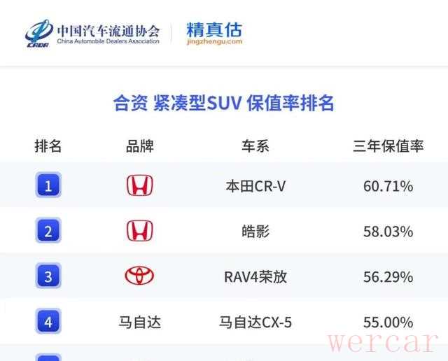 J.D.Power刚出的保值率报告,CR-V三年残值62.3%,同级合资对手普遍55%上下。